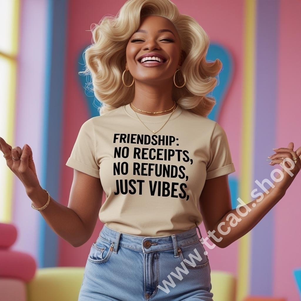 A soft, breathable cotton T-shirt that celebrates true friendship — no receipts, no drama, just pure vibes.